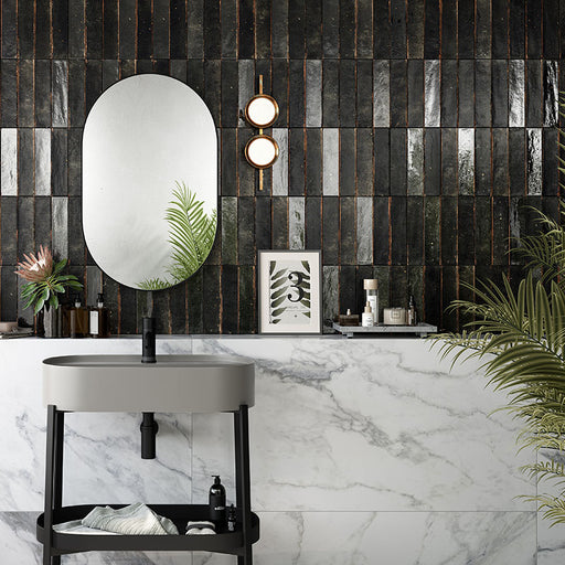 Puro Brick Nero Marquinia 6x25 - Gres Effetto Marmo Mattoncino Opaco